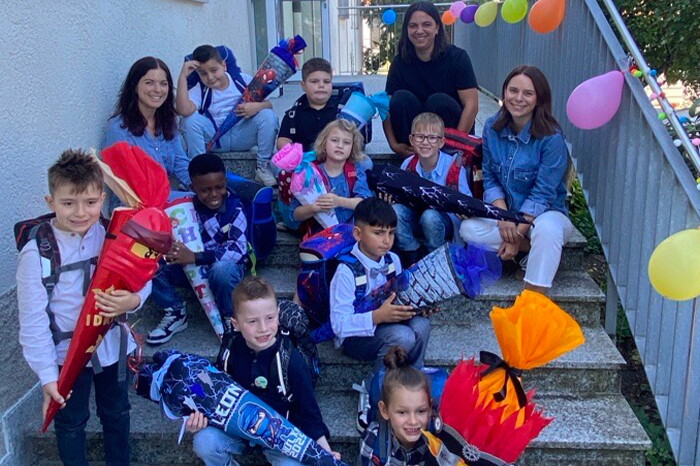 Anschließend ging es für die frischgebackenen Schulkinder mit ihren neuen Schulranzen in die erste Unterrichtsstunde. Währenddessen nutzten die Eltern die Gelegenheit, bei Kaffee und Brezeln ins Gespräch zu kommen.